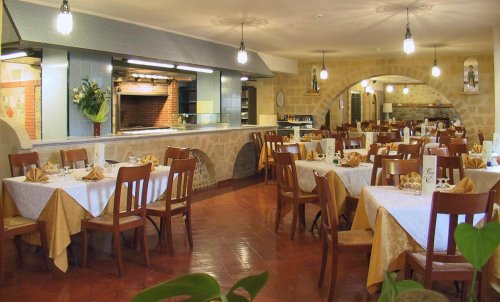 The "Diodoro" pizzeria offers a wide choice of more than 30 types of pizzas, served in country-style surroundings with a characteristic fireplace.