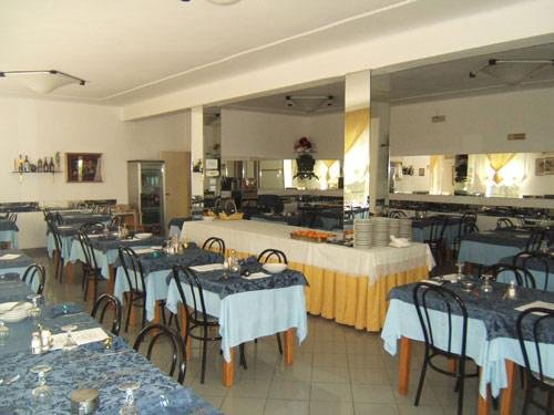 L'elegante ristorante offre 3 menù a scelta con ricchi Buffet di verdure, antipasti ed insalate, specialità di pesce, menù personalizzati per bambini, vegetariani e celiaci.