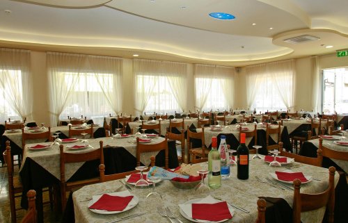In una bella e luminosa sala da pranzo viene proposta una cucina con menù a scelta di carne o pesce, piatti che rispecchiano la tradizione popolare della cucina romagnola. Non mancano ricchi buffet di verdure a pranzo e cena e di dolci a colazione.