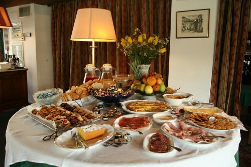 The hotel serves a delicious continental buffet breakfast with homemade cakes.