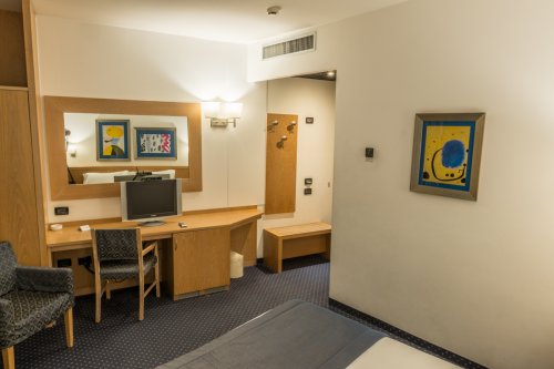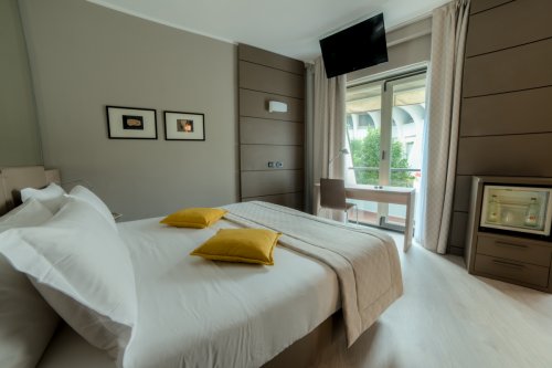 The Hotel Cardano has 60 single rooms with French beds and carpets, all of which are equipped with air-conditioning, colour TV, a radio, a mini-bar, a direct dial telephone and a balcony.