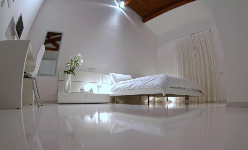 Tutti gli ambienti, eleganti e ricchi di charme, hanno soffitti in legno con travi a vista e sono accuratamente arredati in stile design.