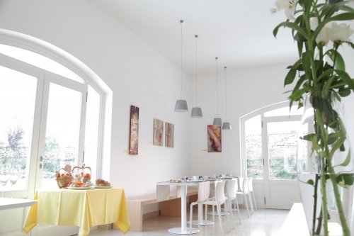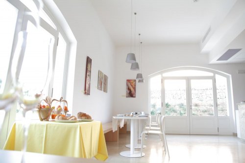 La colazione, a base di una vasta scelta di prodotti dolci e salati, con frutta di stagione ed il rinomato miele della Murgia Materana, viene servita un un’ampia ed accogliente sala.