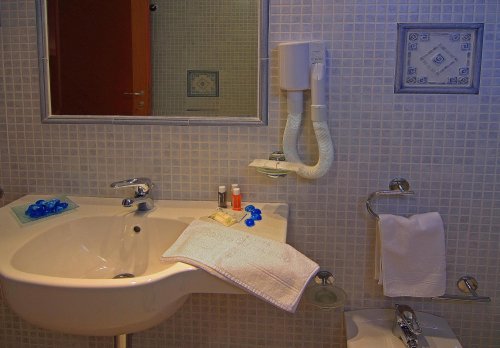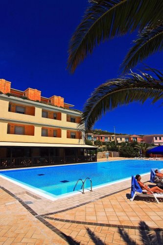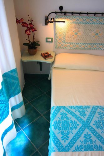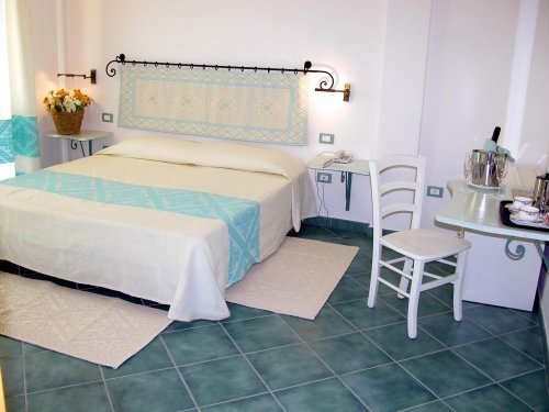 The hotel has 60 guest rooms decorated with Sardinian hand-made furniture, equipped with satellite colour television, a minibar, a telephone, air conditioning, a safety deposit box, a garden or balcony, and an en suite bathroom with a hairdryer.