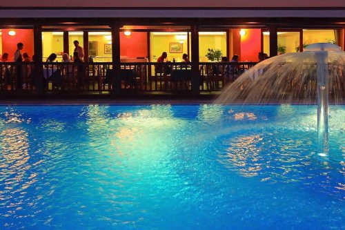The hotel has an elegant bar with comfortable sofas where guests can play billiards or relax with a drink next to the swimming pool.