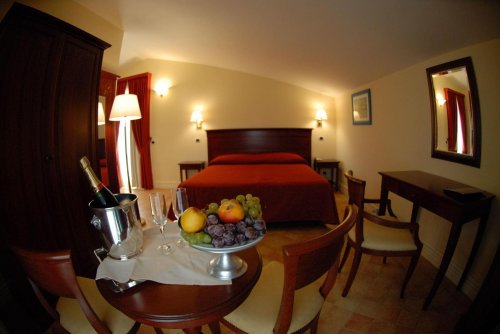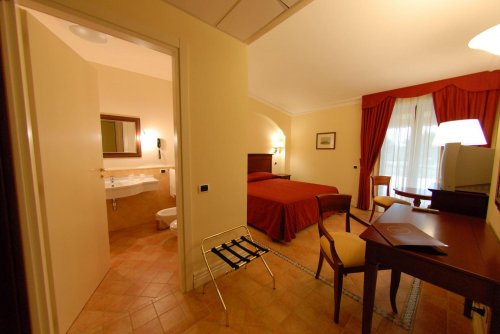 The Junior Suites are situated on the top floor of the hotel and have a splendid view of the panorama from a private balcony. They each have a double bed or two twins, extra beds available on request, minibar, safety deposit box, satellite colour television, telephone, air conditioning, heating, WiFi Internet access, desk, wake up call service, lounge area, ensuite bathroom with shower or hydra massage bath or jacuzzi, hairdryer, complimentary toiletries, slippers and a bathrobe.