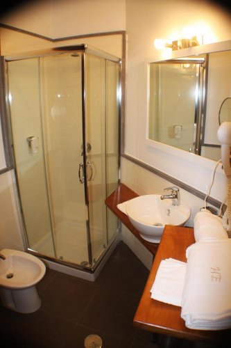 Le camere, tutte non fumatori e molto spaziose, dispongono di aria condizionata con termo-regolabile, telefono, cassaforte a combinazione, TV color, frigobar e un piccolo balcone. I servizi privati sono attrezzati con box doccia e asciugacapelli.