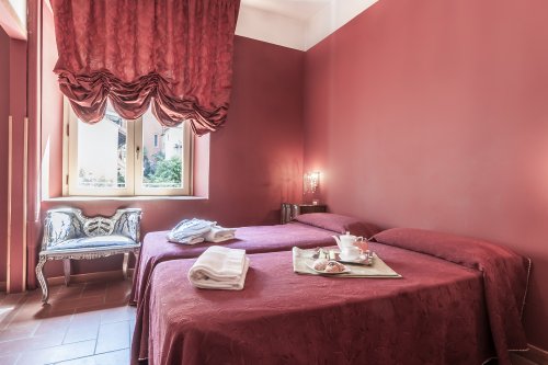 The hotel has luxurious and comfortable rooms with a beautiful view of the Foro Romano, Via dei Fori Imperiali and of the Torre del Campidoglio.