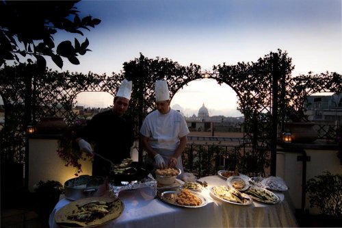 Tutte le sere, oltre a degli ottimi Coktails e Drinks, viene servito un piccolo buffet preparato dallo Chef direttamente in Terrazza.