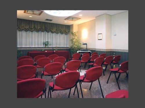 L'accogliente sala riunioni all'occorrenza è dotata di lavagna luminosa, proiettore per diapositive, lavagna a fogli mobili, poltroncine con tavolette scrittoio.