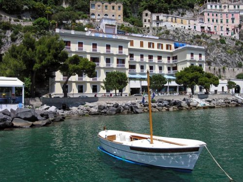 Hotel La Bussola is situated on the beach front in Amalfi, in an area with a splendid view, a short walk from Piazza del Duomo and the port where the boats leave for Positano, Capri, Naples and Salerno. The hotel benefits from a peaceful panoramic location to guarantee guests a pleasant unforgettable stay on the splendid Amalfi coast in a unique beautiful setting where land and sea become one.