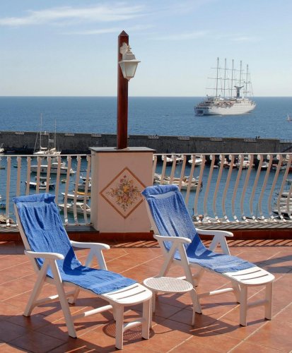 The superior rooms also feature air conditioning, a minibar, a balcony or a panoramic terrace with a view over the sea and the port.