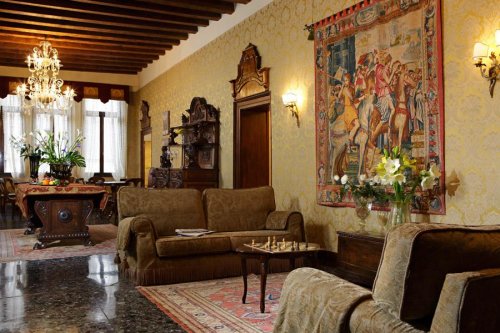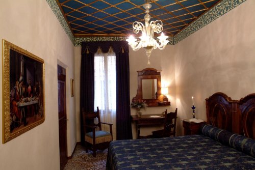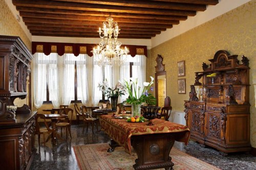 Gli ospiti vengono accolti in una location celebre per la sua bifora ad angolo e una caratteristica scala di marmo, in ambienti dal fascino di una dimora privata, intima ed elegante, con arredi delicati e ricchi di broccati per tessuti e complementi, vetro di murano per lampadari, applique e specchi che ricreano l'atmosfera della Venezia dei Dogi.
