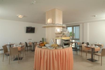 La colazione a buffet viene servita al quarto piano nella sala panoramica dell'Hotel.