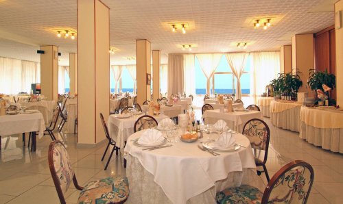 The hotel has a large restaurant with a maximum capacity of 400 people which serves traditional Romagna cuisine alongside International meat and fish dishes, accompanied by prestigious regional and international wines.