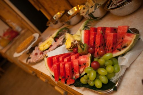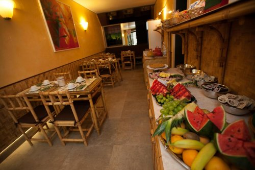 Il buffet self service della prima colazione viene servito al mattino nell'accogliente sala.