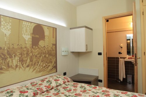 L'hotel dispone di camere confortevoli di varie dimensioni, arredate in stile sobrio ed essenziale, tutte dotate di TV color satellitare al plasma, linea diretta telefonica con l'esterno, frigobar, aria condizionata, bagno privato con asciugacapelli.
