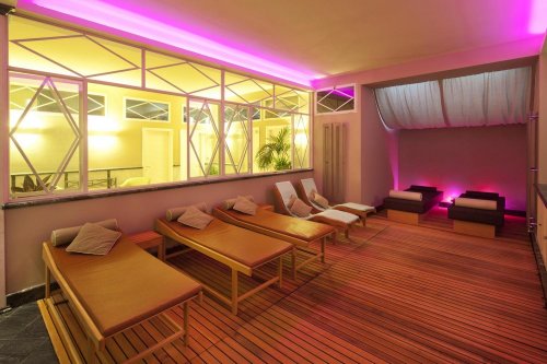 The hotel also has a snack bar, a restaurant, a conference room, an indoor and outdoor pool, a fitness centre, tennis and five-a-side football courts, a bathing establishment and reserved parking spaces.