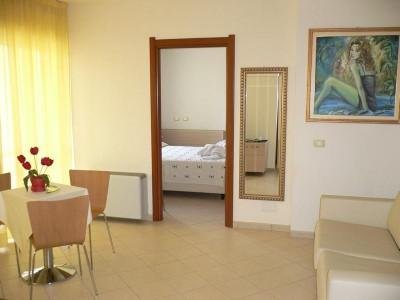 The hotel has very large rooms (almost small apartments), furnished in a modern style, with a living room, 1 or 2 bedrooms, telephone, Wireless Internet connection, balcony and private bathroom.