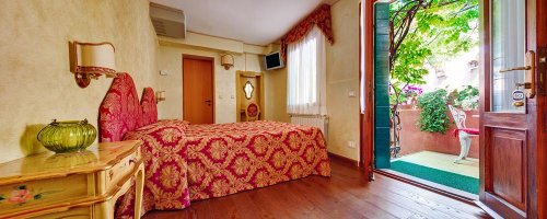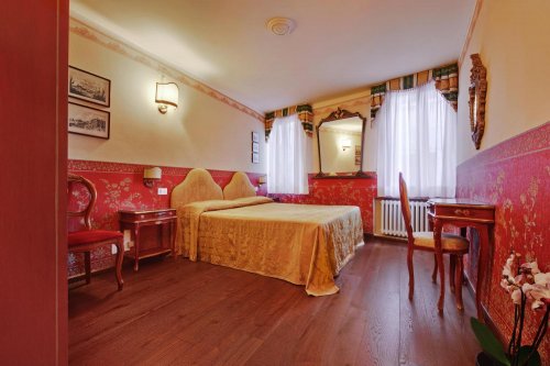 Le camere, arredate in classico stile settecento veneziano con arredi e tendaggi abbinati, dispongono di TV color satellitare, telefono con linea diretta, connessione Wi-Fi a Internet, aria condizionata, bagno privato con doccia e asciugacapelli.