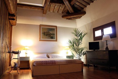 Guests are welcomed in to a room decorated with a large fresco depicting a suggestive image - an important part of the history of the Po valley, which was painted by Elvio Mainardi, who once lived in the building which now houses the Amolara.