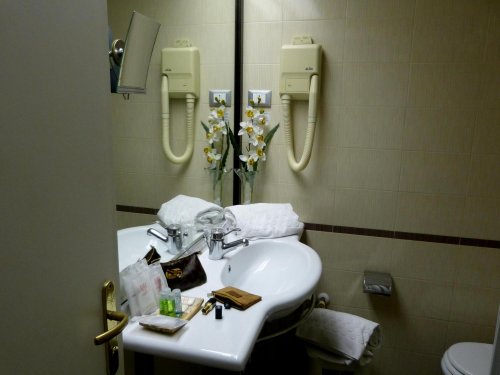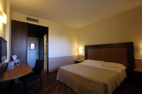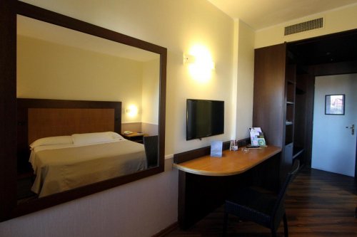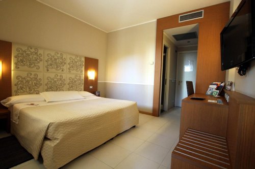 The rooms include a minibar, colour television, Mediaset Premium, a telephone, air conditioning, and an en suite bathroom with a shower.