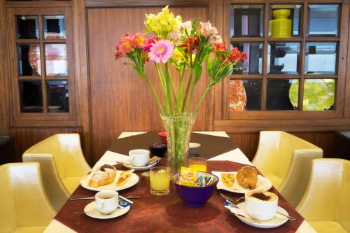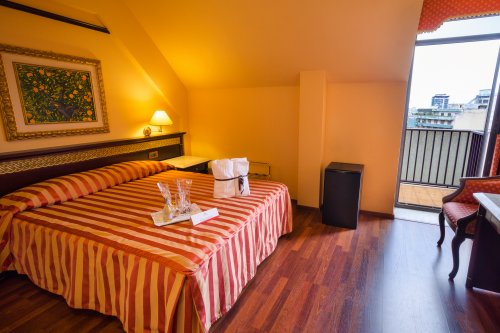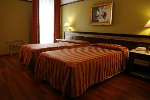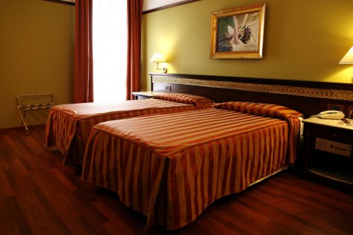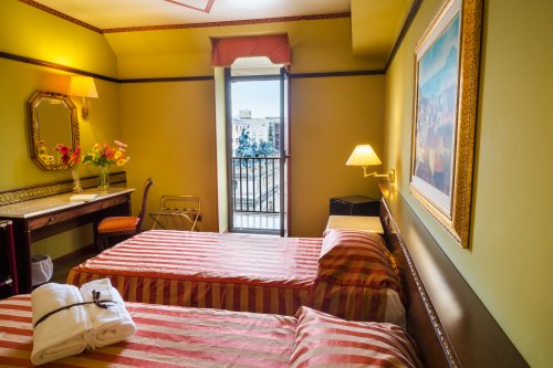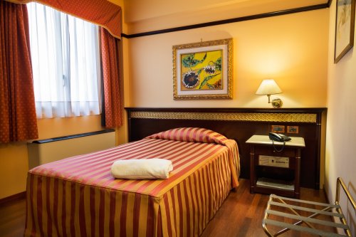 The hotel has 94 rooms of which 5 are Superior rooms with a hydromassage bath and 8 junior suites, all are completely soundproofed and have double glazed windows. All the rooms feature air conditioning, a telephone (direct dial and internationally enabled) a radio, a minibar, a colour television with Sky channels, Wi-Fi access and an en suite bathroom with a shower.