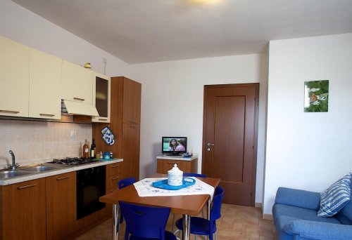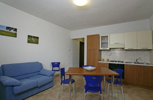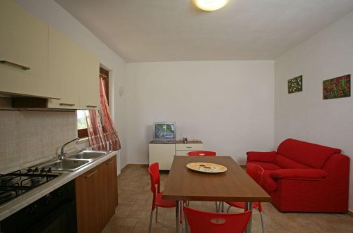 - two-room apartments measuring 55 square metres that can comfortably accommodate up to 4 people. They consists of a double bedroom, a kitchen/living room with a sofa bed for two, a refrigerator, an oven, dishes, a colour television, a storeroom and an en suite bathroom.