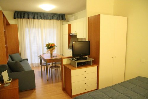 The aparthotel offers one-roomed, two-roomed and three-roomed apartments (some are brand new), sleeping from 2 to 6 people, all with an equipped kitchen, a furnished lounge, a sofa bed, a separate sleeping area, a bathroom, a private balcony, a direct dial telephone, satellite TV, a safe-deposit box, air-conditioning, fire alarms, children’s cots and highchairs on request, a change of linen every other day and a wireless ADSL Internet connection.