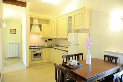 The apartments have a spacious living room with a kitchenette, a fully equipped kitchen with an oven, a range hood, a refrigerator and utensils, a comfortable sofa bed for two, a fireplace, a plasma satellite television, and a table with chairs. The bathroom is elegantly decorated with mosaics and equipped with a washbasin, a bidet and a shower.
