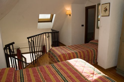 - Split level two room apartments with a sitting area, a kitchenette and a sofa bed for two on the lower floor; stairs leading to an open upper floor with a double bed and a single bed, and an en suite bathroom with a shower and a hairdryer.