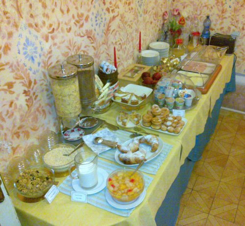 La ricca colazione viene servita ogni mattina nell'apposita sala.