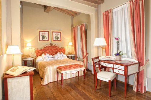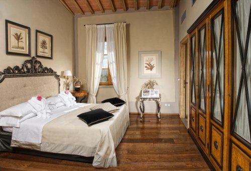 - Superior double rooms are located on the upper floor of the villa and are all very luminous with a lovely view of the Tuscan countryside. They are spacious and elegant with parquet floors and beams on the ceilings.