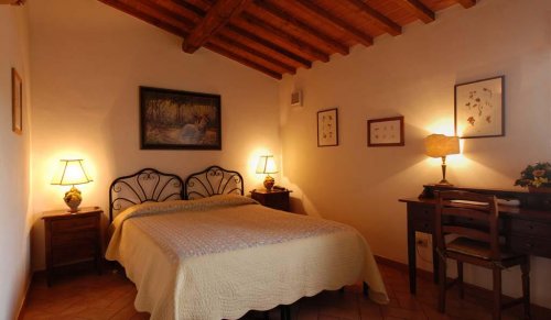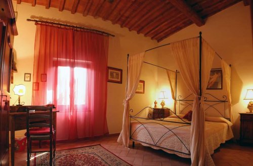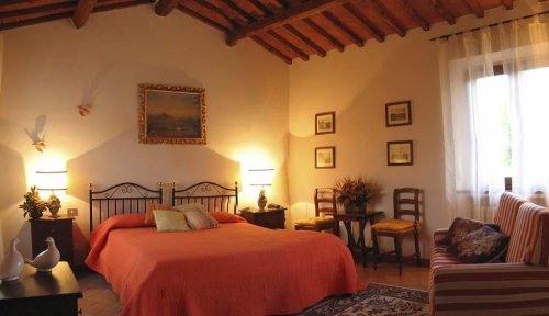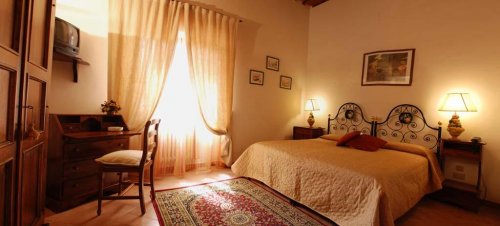 All of the guest rooms are decorated in Tuscan style with visible beams and terracotta floors. The rooms are equipped with satellite colour television, a safety deposit box, a minibar, a direct dial telephone, WiFi internet access, air conditioning and an en suite bathroom with a hairdryer.