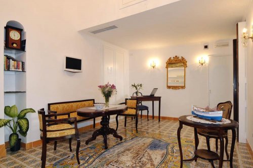 Ampie e luminose, le camere dispongono di un accogliente salotto, rilassante zona notte, aria condizionata, telefono, minibar, TV color satellitare, cassaforte, radio, connessione Wi-Fi a Internet, bagno privato con decorazioni in ceramica di Vietri.