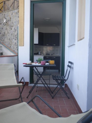 L'appartamento San Giovanni è provvisto di ampia e luminosa camera da letto, cucina con ampio soggiorno, terrazzo con sdraio, ombrellone, tavolo e sedie, bagno privato con doccia e lavatrice.
