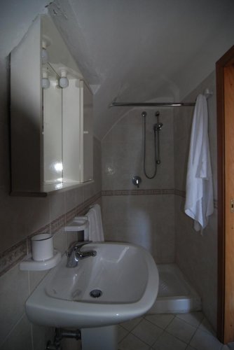 Al piano superiore offre camera da letto matrimoniale, terrazzino attrezzato con doccia, sdraio, ombrellone, tavolo e sedie, bagno privato con doccia.