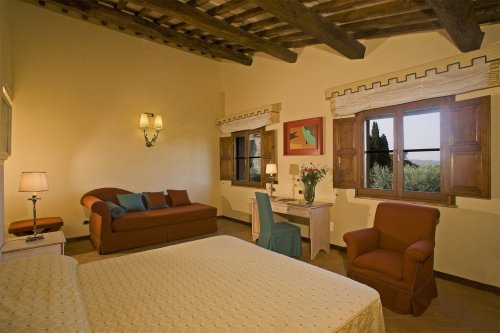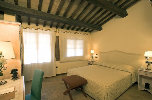 From the attentive restoration of an antique castle, today rises an exclusive accommodation structure equipped with all comforts and quality services as for example air conditioning in all rooms and a private car parking while preserving a familiar atmosphere. The surrounding park consists in olive groves and rose beds, embedded there is a pool with the shape of an ample Renaissance basin and where you still can find Etruscan remains together with a sunbed area.