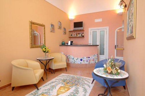 The rooms feature terracotta floors and Majolica pottery from Vietri, period vaulted ceilings with exposed beams and air conditioning, a minibar, a colour television, a safe, a direct dial telephone and an en suite bathroom with a bath or hydromassage shower and a hairdryer.