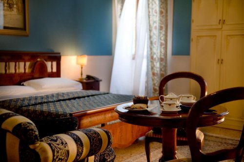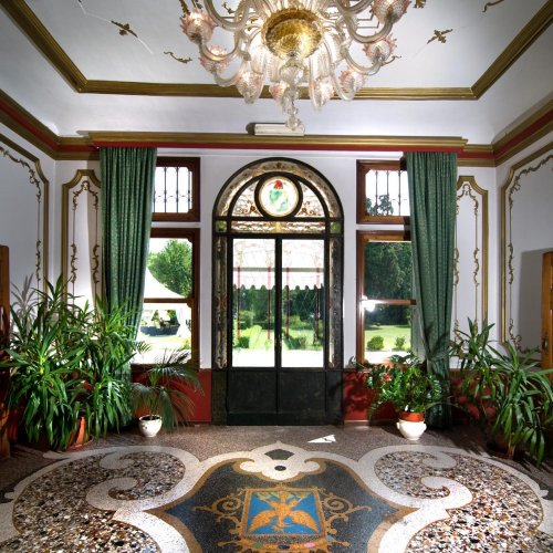 The management welcomes guests in to an 18th century Villa where the interiors and the furniture recall the splendour of a bygone era, dominated by the colour green.