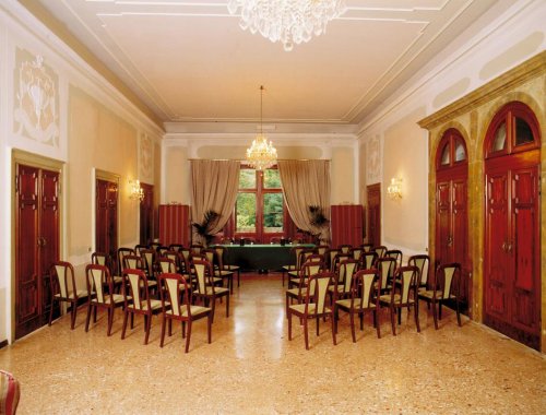 Recently restructured Park Hotel Villa Marcello Giustinian is set in 4 hectares of parkland with 3 lakes, 1.5km from the centre of Mogliano, 19km from Venice and 15 minutes drive from the "Passante di Mestre" exit off the A4 motorway.