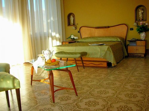 - Le camere Tizy e Pino hanno ampi balconi e pavimenti originali in graniglia.