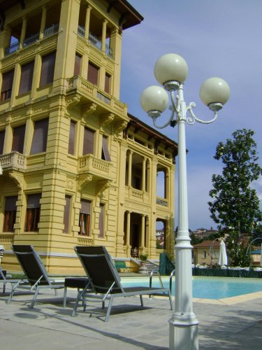 Le camere e gli spazi comuni si distinguono per i raffinati arredi in stile Liberty, i pavimenti in graniglia, le ringhiere in ferro battuto, i decori e gli affreschi realizzati dal famoso pittore Bruno Cordati.