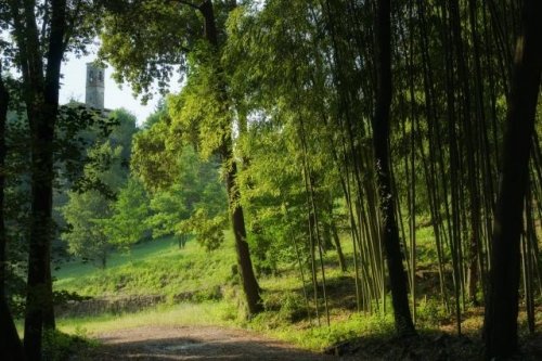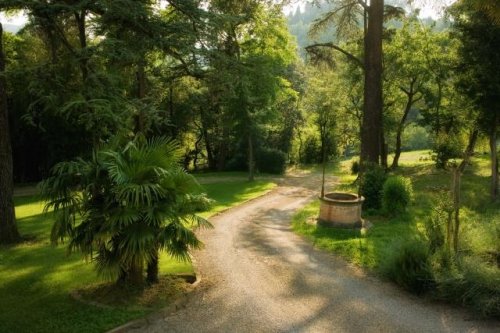 This road goes through the park for around 600m and comes out of the woods in front of the villa.