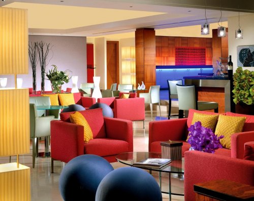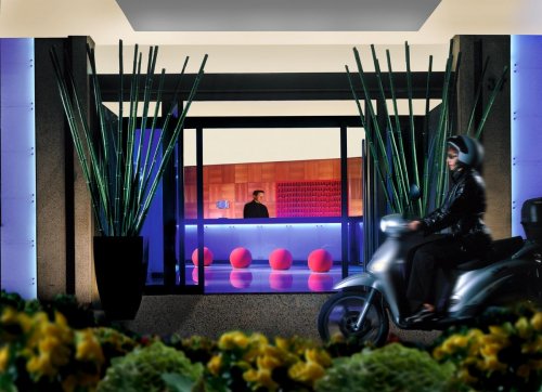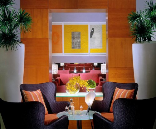 The spacious lobby is lively and luminous, enriched with important works of contemporary art. It extends beyond the class walls to an open air patio where guests can sip a drink or enjoy a delicious bite to eat from the à la carte menu.