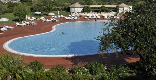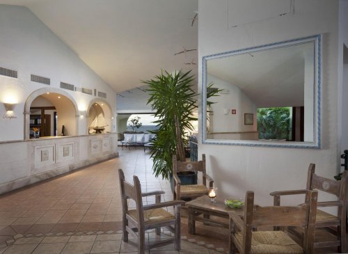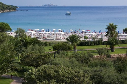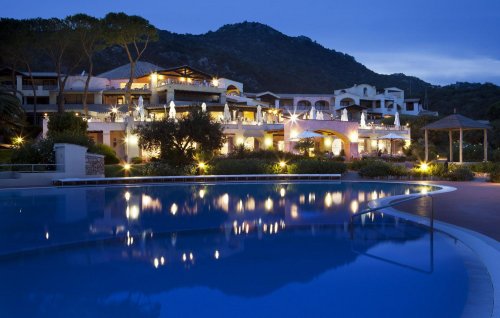 El hotel, inmerso en un jardín con vistas a la playa de fina y blanca arena del Golfo de Marinella, se caracteriza por su estilo típico local y dispone de 2 restaurantes centrales, un restaurante y un snack bar en la playa, bar central, piscina con zona para niños, centro de congresos y gimnasio.