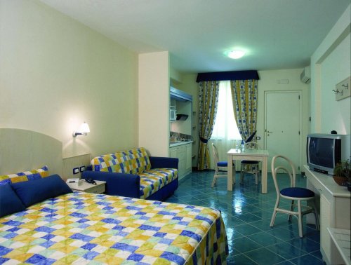 Todo el complejo está elegantemente decorado en estilo mediterráneo y las habitaciones (fórmula hotel y residence) disponen de las mejores comodidades para garantizar a los clientes una agradable estancia de placer o trabajo.