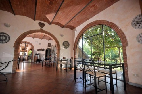 El restaurante de la finca ofrece las especialidades de la cocina local, elaboradas con productos biológicos y materias primas toscanas DOC (denominación de origen controlada) y D.O.P (denominación de origen protegida) de la zona.