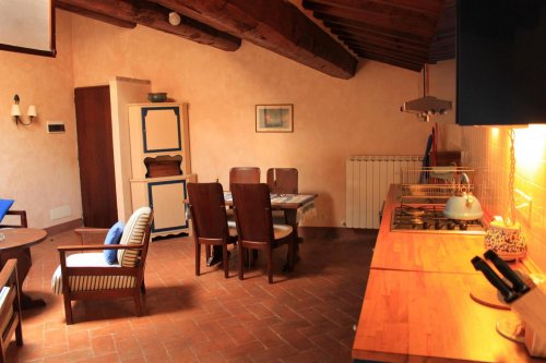 La Antica Rimmessa es el apartamento más pequeño, ideal para una familia con dos niños o parejas de amigos y tiene dos amplios dormitorios (uno de matrimonio y otro con dos camas individuales), cada uno con su propio baño privado y una cocina americana totalmente equipada que da a la sala de estar con estufa de leña.