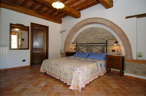 L'ampia camera matrimoniale, arredata in stile tipico toscano, è dotata di ingresso indipendente, giardino esterno privato, bagno privato con doccia.